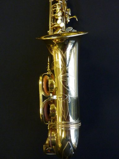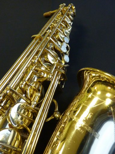 Voici un Alto YANAGISAWA « 901 », verni, gravé, clé de Fa# aigu.