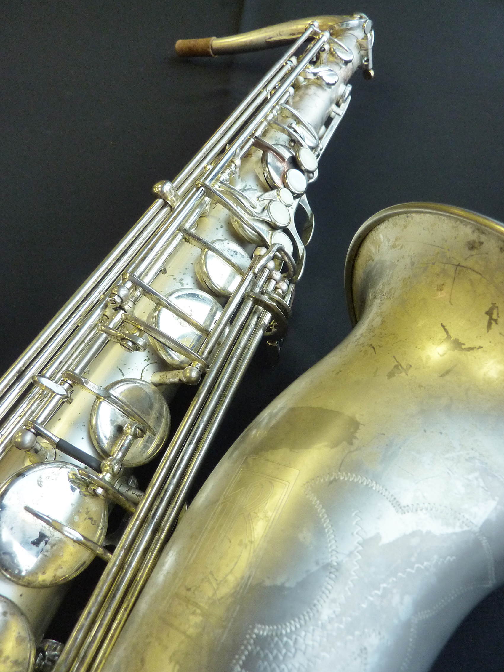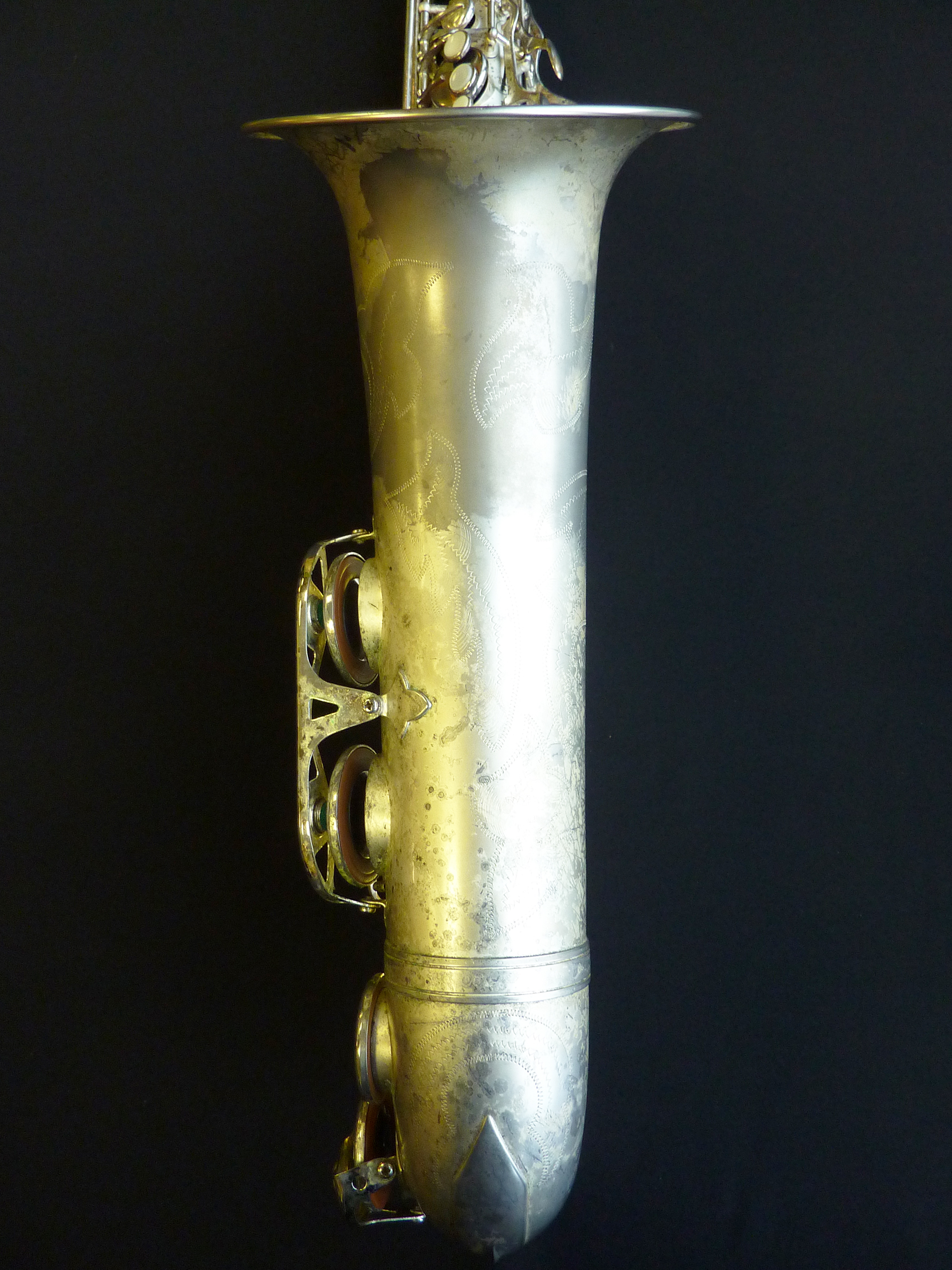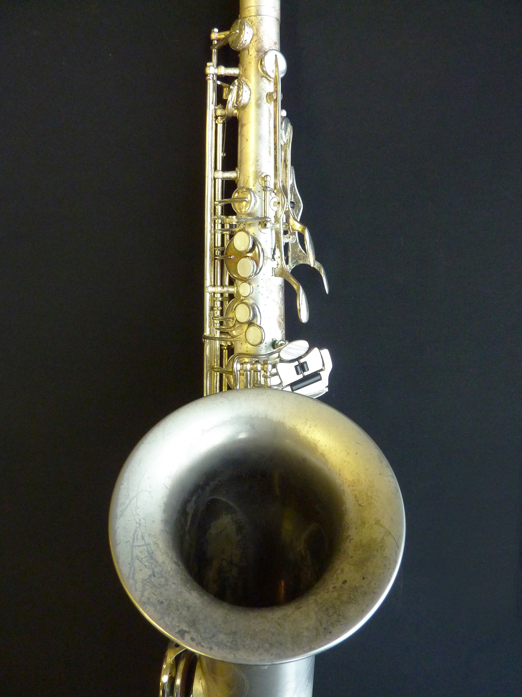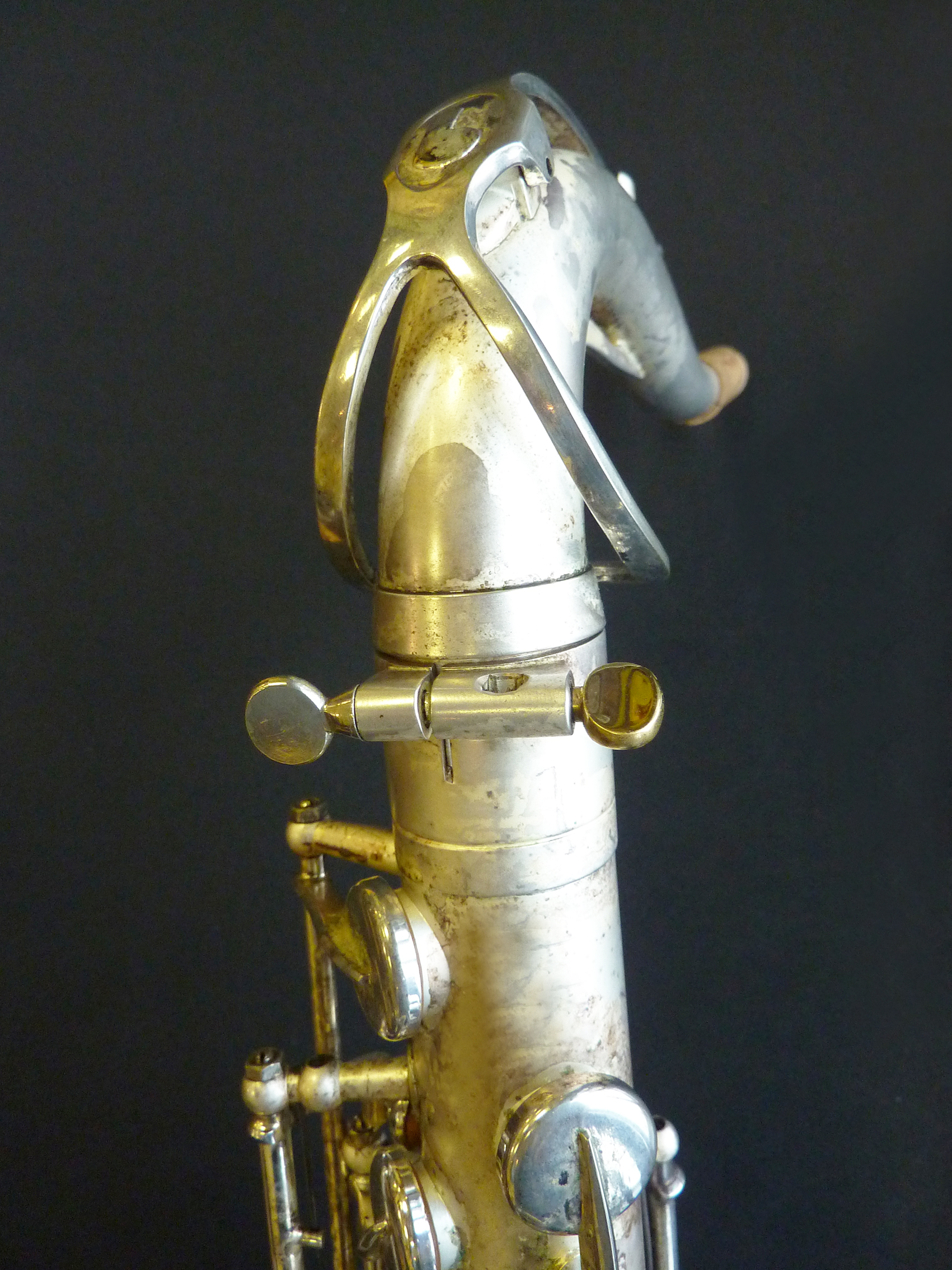 Voici un Ténor BORGANI « Pearl Silver » argenté, sablé, clé de fa# aigu.